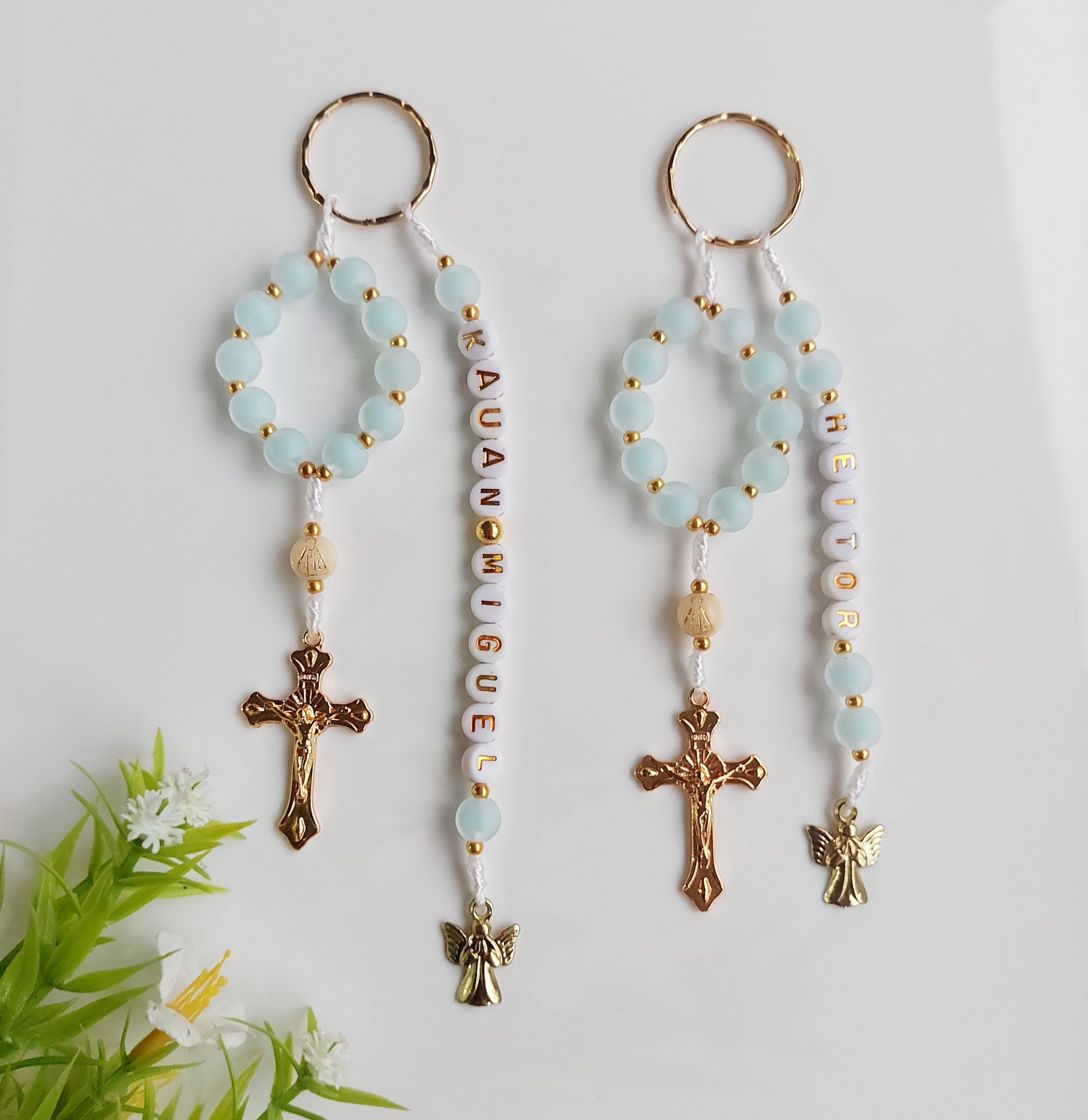 Chaveiro argola com dezena e personalização do nome contas foscas
