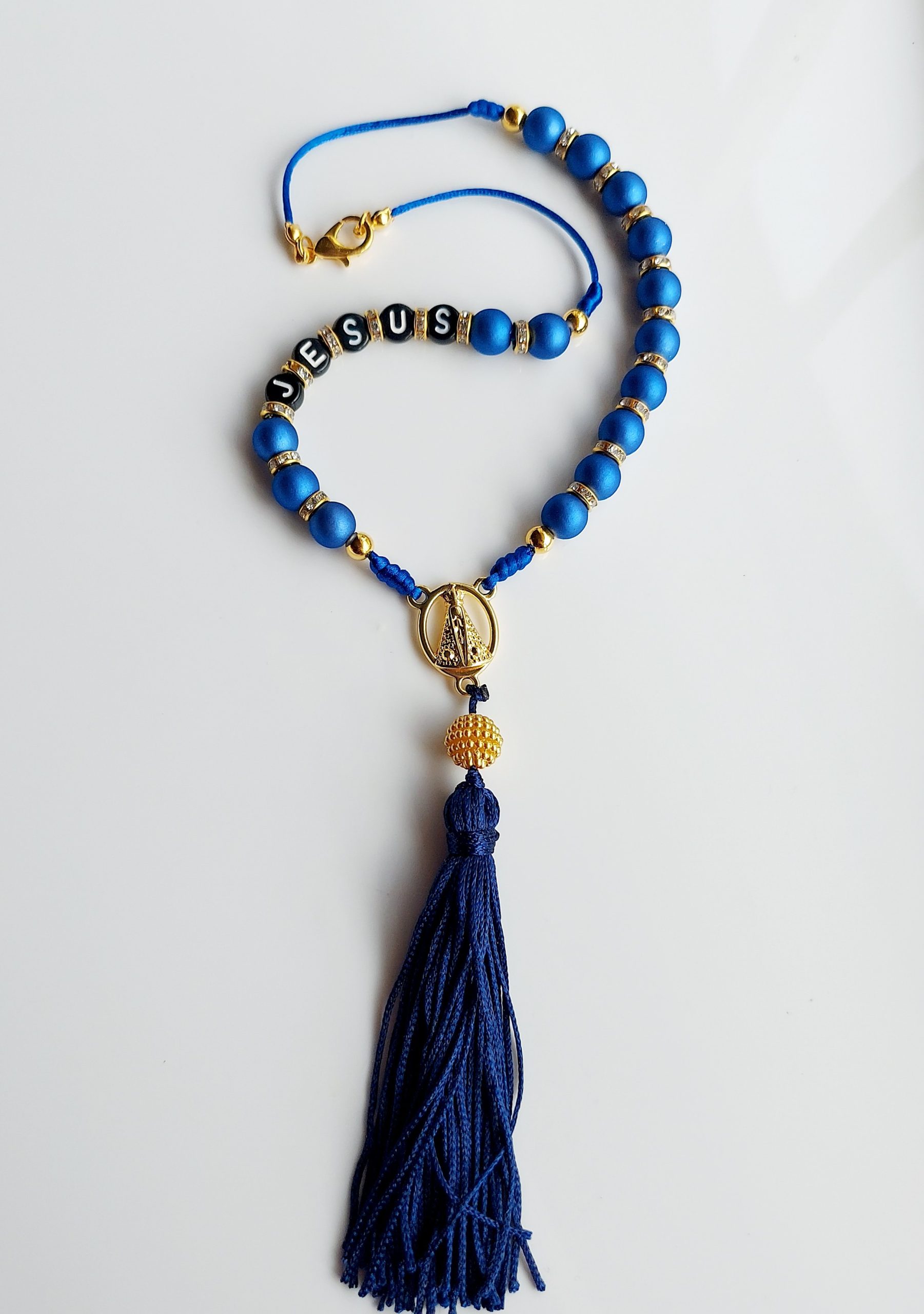 Terço de carro com tassel, contas emborrachadas e separadores rondele com stras