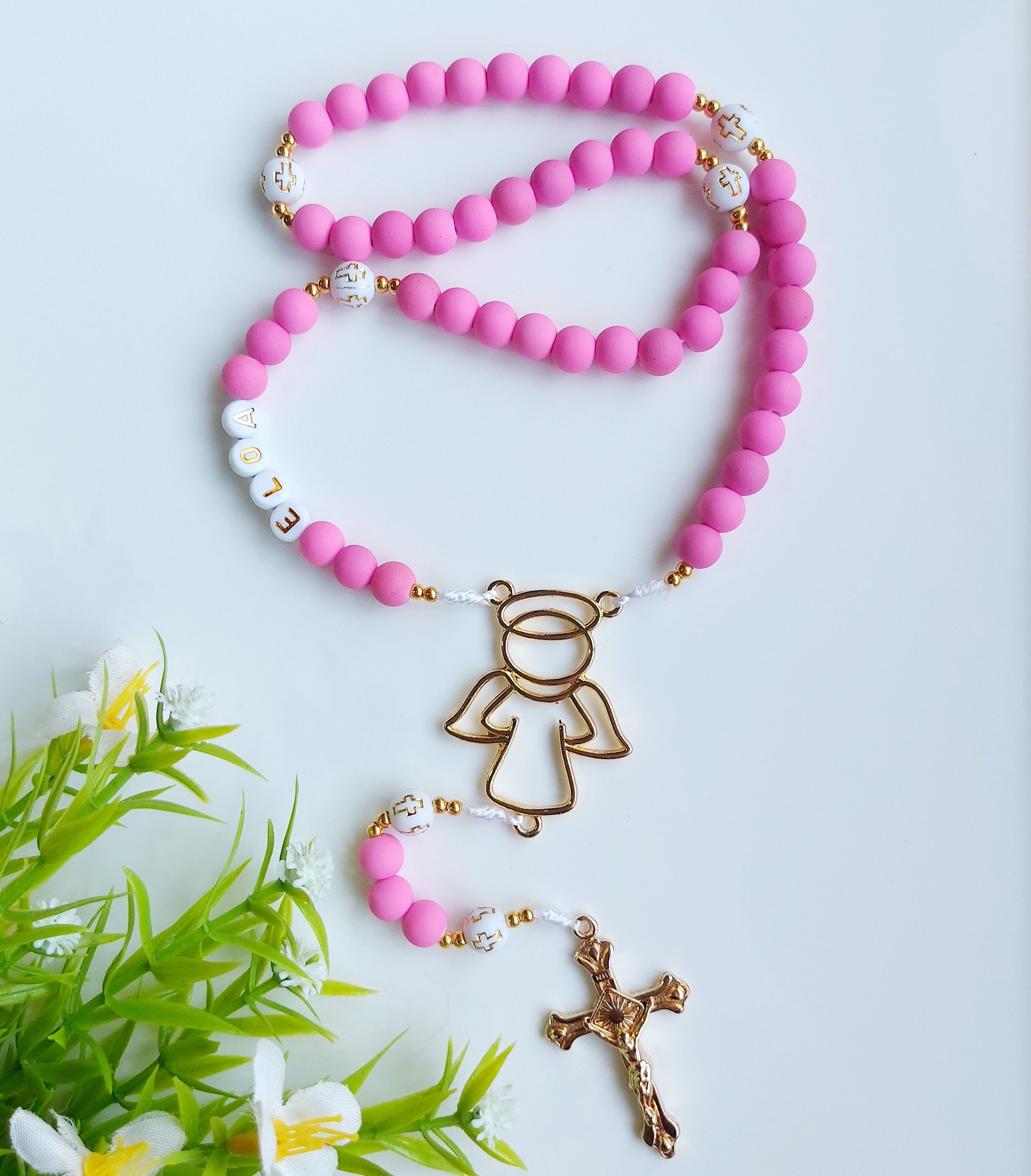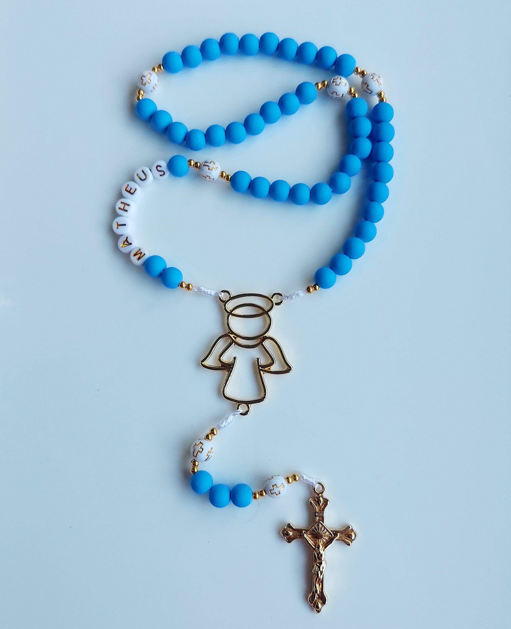 Terço anjo vazado com contas emborrachadas Pai Nosso bola cruz separadores abs